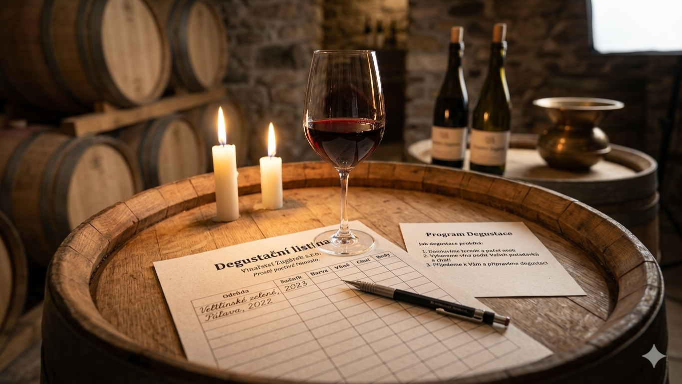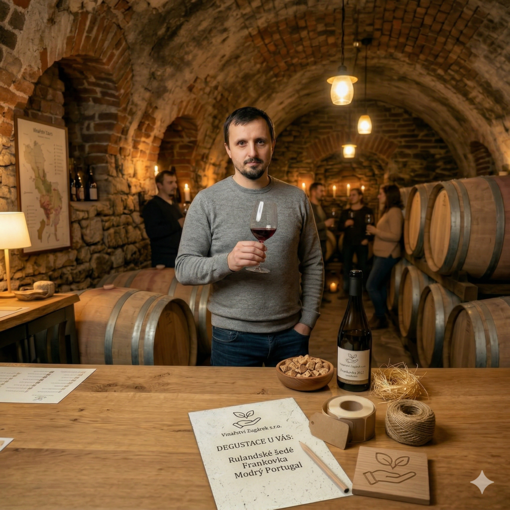 - Co vás čeká: Společně ochutnáme 8–10 vzorků našich vín. Ke každé láhvi vám řeknu příběh z vinice i ze sklepa.